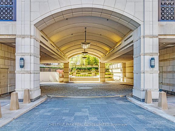 The Avenue, a prestigious chateau-inspired luxury residence at 155 St. Clair Avenue West, surrounded by Toronto's most desirable neighbourhoods, Forest Hill, Casa Loma, The Annex, and Yorkville. This elegant suite features a split two-bedroom plan with formal dining and living area with a fireplace. Gorgeous hardwood, marble floors, and coffered ceilings are carried throughout enhancing timeless appeal. The Primary bedroom filled with natural light overlooks a manicured courtyard and has a walk-in closet and 5-piece spa-like ensuite. The second bedroom offers double closets with wardrobe built-ins and French doors. Currently used as a Den. A custom Cameo kitchen with breakfast area is equipped with all high-end appliances. Sub-Zero panelled fridge and freezer, Double Wolf gas stove, and Miele dishwasher. A true highlight is the expansive 190-foot private terrace overlooking the landscaped courtyard, a rare outdoor retreat in the city. This residence also includes two parking spots and a spacious private locker room. The Avenue offers hotel-inspired amenities, including 24/7 valet and concierge service, pool, sauna, fitness centre, yoga & treatment room, party room, a car wash bay, and two guest suites. A pleasure to show.