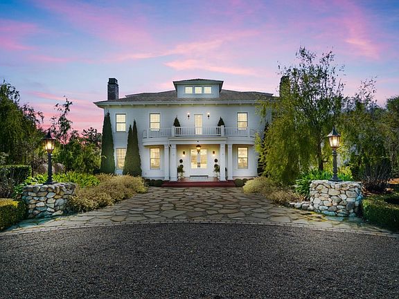 A modern country estate offering a captivating blend of refinement, sophistication & California living at its finest. Designed for both entertaining & luxurious everyday living, integrating breathtaking views, contemporary amenities & tranquility. Gated entry gives way to alluring front porch, leading to the spacious foyer featuring coffered ceilings & grand staircase. Elegant oak floors can be found sweeping throughout. Chefs kitchens w top tier appliances, large island & walk-in pantry. Natural light abounds as expansive windows provide panoramic vistas, framing the lush grounds like living masterpieces. Thoughtfully designed floorplan blends high end finishes & effortless livability. Situated on 5+ landscaped acres, the manicured grounds create an entertainers paradise. Indoor-outdoor living is enhanced by a generous patio complete w its own kitchen. Stroll the outdoor oasis of manicured lawns & rows of citrus trees to a fenced garden featuring raised beds & potting shed. Pickleball anyone? Enjoy countless hours of fun on your own court, making a lifetime of memories. Car enthusiasts rejoice in the 3 car garage for all your treasures. Separate ADU located above the garage. A rare opportunity to own a serene retreat, a bespoke masterpiece designed for those seeking their ace.