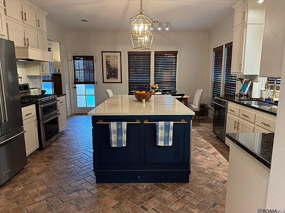 Perfect location right off Highland Road, near Kenilworth, close to LSU and walking distance to Superior Grill! This home was completely renovated in 2021. Featuring 10 ft ceilings in main living areas, new windows, 4 bedrooms, 2 full baths with 2118 sq ft of living. Kitchen with cabinets to the ceiling, KitchenAid stainless-steel appliances, gas cooktop with dual ovens, two beverage centers, walk-in pantry with overabundance of storage, breakfast area in kitchen plus island seating for two AND full dining room. Flooring includes beautiful, engineered acacia wood, brick and marble tile. One bedroom was remodeled into an office with built-in bunk beds that will sleep five comfortably. Master bedroom has private ensuite bath with dual sink vanity, washer and dryer with built-in storage, folding/hanging station and a large walk-in closet with custom built-ins that is a shoe enthusiast’s dream – a MUST SEE! Outdoors includes… new driveway that can accommodate six cars with a brick apron on the street for additional two car parking, fully fenced large yard… replaced in 2022 with two gates allowing easy access in and out, one of which is oversized leading to concrete slab for boat or RV storage, mature landscaping, nice patio with concrete slab ready and awaiting a screened-in outdoor kitchen by the new owners! Located in Flood Zone X and does not require flood insurance.
