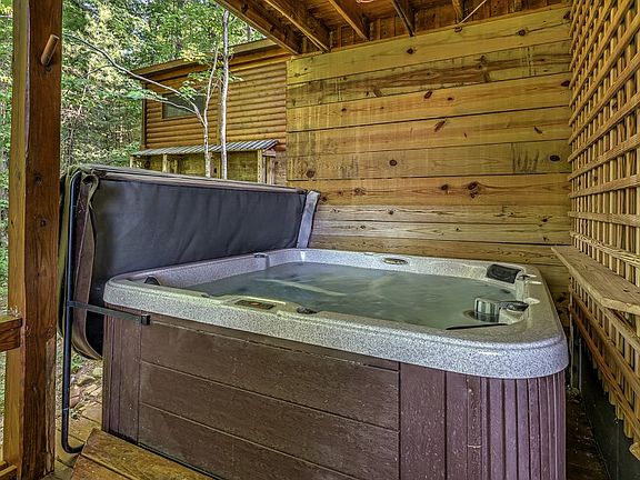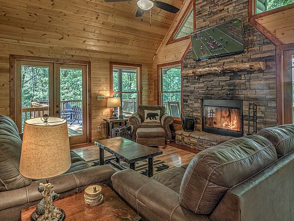 Nestled in the heart of the ASKA Adventure Area, this charming 3-bedroom, 3-bath log-sided cabin is the perfect retreat for both relaxation and adventure. Surrounded by a private wooded lot with stunning mountain views, this whimsical cabin offers an inviting atmosphere that exudes fun and comfort. Inside, the great room and dining area are highlighted by a massive stone gas fireplace, creating a cozy, welcoming ambiance. The kitchen features abundant cabinetry, granite countertops, and a bar area for casual dining. The spacious master suite opens to a serene sleeping balcony porch, while the ensuite bath boasts a claw foot tub, walk-in shower, and large closets. The full finished terrace level provides comfortable guest quarters, complete with a den/rec room that opens to a lower patio with a hot tub—ideal for unwinding after a day of outdoor adventures. The expansive outdoor space is perfect for entertaining with an outdoor firepit. The large circle driveway offers plentiful parking. Additional features include spacious storage above the double carport/garage with a workshop, ensuring ample room for all your gear. The cabin is just minutes from the river, USFS lands, and hiking trails, and is located in a quiet, well-maintained community with easy access to scenic exploration. Whether you're looking for a permanent residence or a weekend getaway, this cabin offers the best of both worlds—along with excellent vacation rental potential!