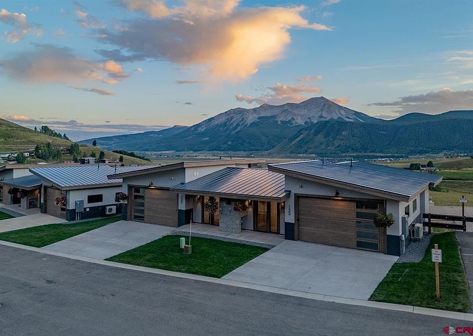 Welcome to The Peaks at Snowmass Mt. Crested Butte's first new neighborhood in 18 years! This location is special. Stunning and private. Each south-facing home features horizon-to-horizon mountain and valley views from every window. There isn't a bad seat in the house! Skiers in the family will find the Silver Queen ski lift & base area amenities are just a short walk away, so no need to drive. The Peaks at Snowmass was designed for ease of ownership with low maintenance and a true lock-and-leave lifestyle. No need to shovel snow or mow the lawn when you are in Crested Butte! The developer is offering a substantial decorator concession at closing so you can outfit the home anyway you desire! These modern mountain homes feature three unique levels of state of the art living! The upper level primary suite is air conditioned and offers a gorgeous bath, vaulted ceilings, a washer-dryer space, a large closet, a covered balcony and dramatic views of our valley's amazing peaks. The main level living, dining and kitchen areas enjoy air conditioning, floor-to-ceiling glass and sliders that showcase those same utterly stunning valley and peak views, a massive deck, Wolf-Subzero appliances, radiant in-floor heat, wide plank oak flooring, designer lighting, and a beautiful floor-to-ceiling gas fireplace with a cool metal surround. The main level also includes a bath and a flex space perfect for a home office or theatre use. The lower level features a junior suite with an attached bath and two more bedrooms that share a full bath with a double vanity. There is another washer-dryer set up and storage closets on this level. Two of the lower level bedrooms enjoy dedicated access to the hot tub patio out back. 155 Snowmass is 2,832 SF with 4 beds, 3.5 baths and includes a snowmelt driveway and a heated garage.