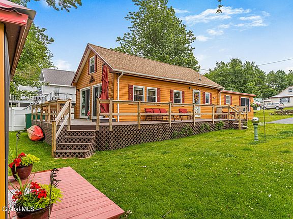 Welcome to your charming lakefront oasis! This property boasts all the desirable amenities that come with lakeside living, including swimming, boating, and fishing all day long. Take in the breathtaking views of the resident eagle soaring over the lake. This delightful cottage has been updated with several modern touches, including a new refrigerator in 2022, fence in 2021, deck in 2019, as well as new kitchen appliances, flooring, and roof in 2018. In 2015, a stunning 1st floor primary bedroom suite was added! Enjoy summer evenings by an outdoor fire or in the living room with the double sliding doors open and a cool breeze wafting in. Savor your morning coffee on the deck or relax with a good book.