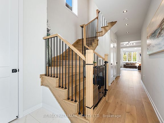 Welcome to this stunning 4-year-old 'Pottery Barn'-inspired home, beautifully set on a premium RAVINE LOT with a fully finished walk-out basement. Designed with elegance and craftsmanship, this residence perfectly balances character and modern comfort.The open-concept main floor showcases 8-ft solid doors, hardwood floors, pot lights, and a spacious Great Room featuring a waffled ceiling, gas fireplace, custom built-ins, and oversized windows overlooking the tranquil ravine. The chef-inspired kitchen offers a large center island, extended cabinetry, and a walk-out to deck - ideal for outdoor dining and enjoying scenic views - plus mudroom access for added convenience. Upstairs, discover spacious bedrooms filled with natural light, a convenient upper-level laundry, and a primary suite complete with a walk-in closet and a luxurious 5-piece ensuite.The finished walk-out basement extends the living space with a bright rec room, bedroom/office, wet bar, and a modern 3-piece bath - perfect for guests, teens, or an in-law setup. Situated on a no-sidewalk lot offering extra driveway parking, this home is located in one of Bradford's most desirable family neighbourhoods, close to parks, schools, and all amenities. A must-see property combining sophistication, comfort, and an unbeatable setting.
