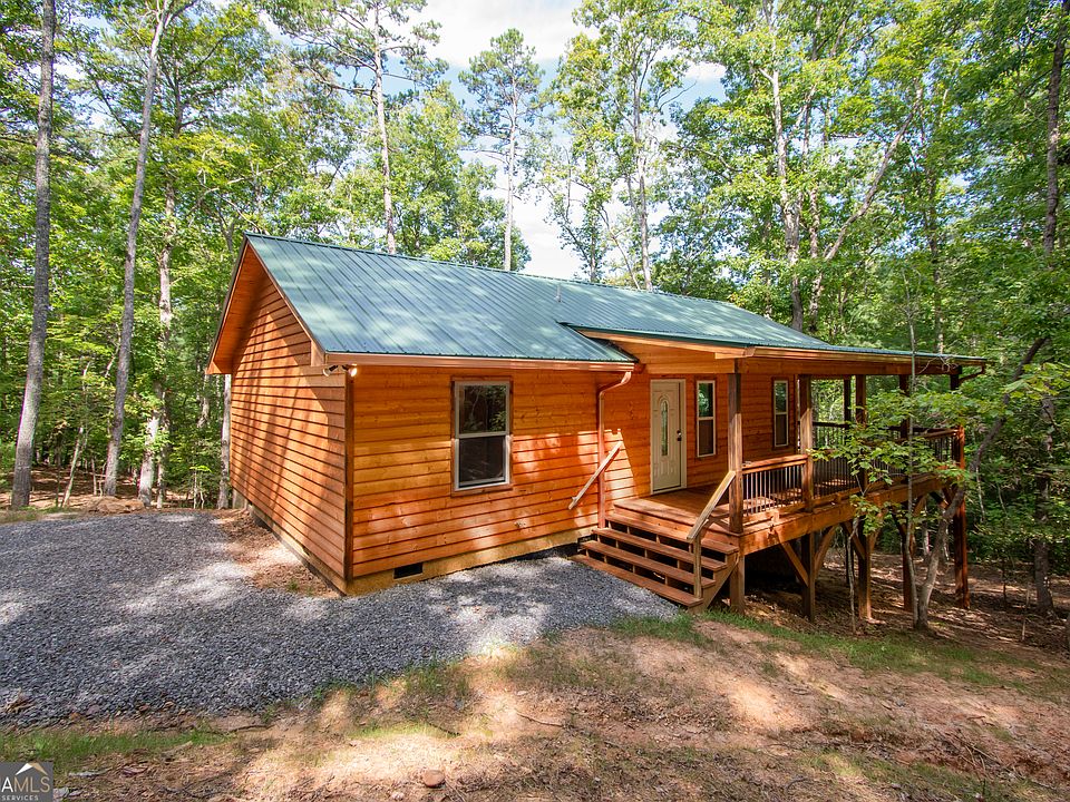 Discover rustic elegance in this beautifully crafted new construction cabin nestled in the sought-after The Preserve subdivision. This one-level home features soaring tongue and groove ceilings, durable LVP flooring, and a custom rustic kitchen that flows effortlessly into an open entertaining and dining area - perfect for gatherings with family and friends. Step outside to the expansive covered porch, where you're surrounded by a serene canopy of trees, offering both privacy and a peaceful escape into nature. Enjoy the community's paved, tree-lined roads, catch-and-release pond, picnic area, and exclusive access to the Nottley River - ideal for outdoor enthusiasts. Conveniently located just a short drive from Murphy, NC, and Blue Ridge, GA, this property blends modern comfort with mountain charm. Whether you're looking for a full-time residence, vacation getaway, or rental opportunity, this cabin has it all. 2500 appliance allowance *Upgrades include spray foam insulation, custom cabinet, T&G soffits, upgraded windows and doors, gutters, 4x8 Sheeting on roof and walls*