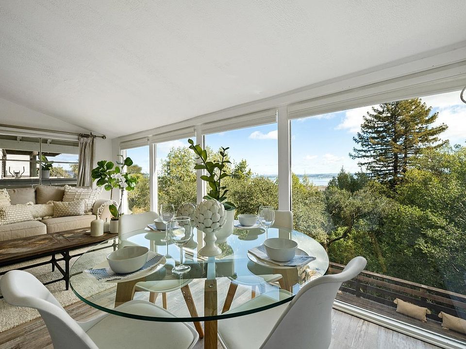 Overlooking the Bay and just steps from world class hiking trails, this special home represents what everyone loves about Marin. Beauty and accessibility. Set on coveted Christmas Tree hill, this charming south facing cottage takes advantage of the natural beauty and light through its picture windows. Stairs nearby lead to old town Corte Madera -- enjoy pizza, wine tasting or yoga. Private and bright, the newly remodeled bath has a heated towel rack and glimpses of nature. Two decks make it easy to relax and enjoy the impressive surroundings, sounds of the outdoors and sunshine. It's perfection for full time indoor/outdoor California living or perhaps a weekend getaway spot/pied--terre. Check with the town for expansion possibilities. Plans for a prior home over 3400 sq. ft. have already been through the city and are available. Good schools & commute are simply a bonus.