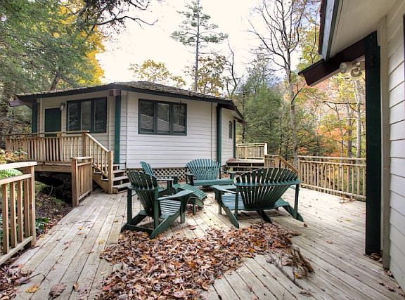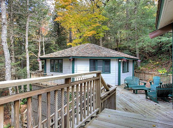 GREAT OPPORTUNITY FOR TWO FAMILIES - ONLY $87,500 FOR A 2 BEDROOM, 2 BATH HOME IN PRESTIGIOUS HOUND EARS CLUB! This property offers two octagon homes on one lot connected by a common deck and comes completely furnished. Each home is tastefully furnished and has been completely remodeled with new furniture and appliances. They show like new. This is the perfect opportunity for two families to invest together or great for a family and adult children. One of these rare situations not often found - live in the gated golf community of Hound Ears Club and invest in a two bedroom home for $87,500. The deck sits high off the ground among towering shade trees and is large enough to relax and all get together outdoors. Free standing fireplaces, wood floors, and charming setting are all part of the ambiance. Located steps from the Watauga River.