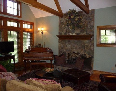 Private Home on Wooded Lot Wrap around deck, custom cabinets & mantle, fieldstone fireplace $569,900