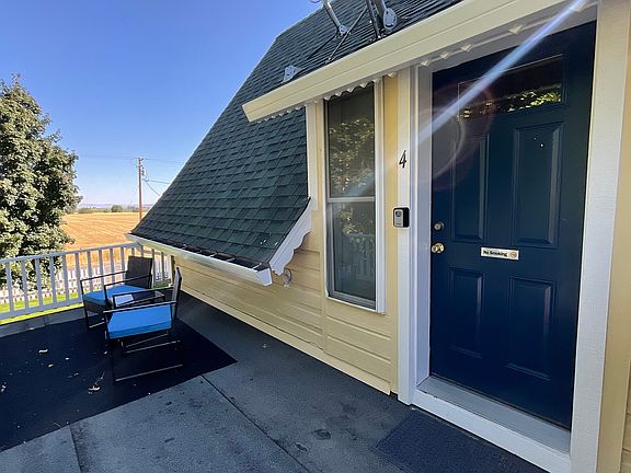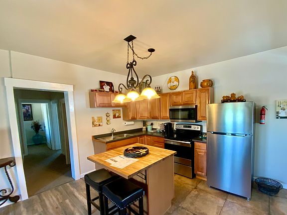 Nicely decorated in kitchen area, end tables and coffee table, ceiling fans, carpet is decent and we had put in new in 2021, painted nicely, towels, shower curtain, some cleaning supplies under sinks, antique dresser in master bedroom with double closets, nightstand and lamp in master, small desk with office chair Queen bed, Double bed in extra bedroom, window coverings are insulated and nice, dishes in kitchen, pots and pans. Couch and oversized chair in living room also. Small Smart TV. Close to town within walking distance to shops, eating and the Surprise Valley hospital and clinic.