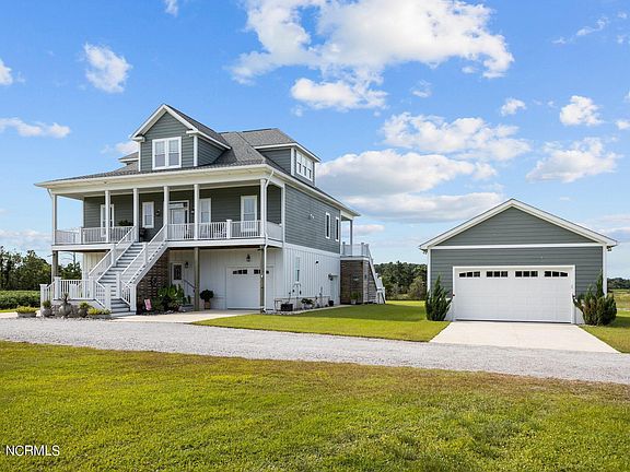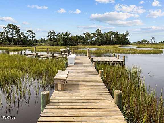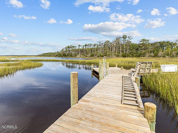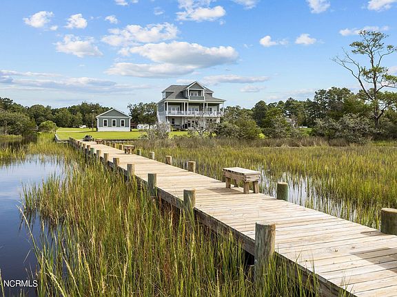 Additional features include a double garage and a detached workshop with an RV electric hookup. Situated just minutes from historic Beaufort and Cherry Point, this property combines luxury living with the tranquility of nature, offering the perfect blend of seclusion and convenience.