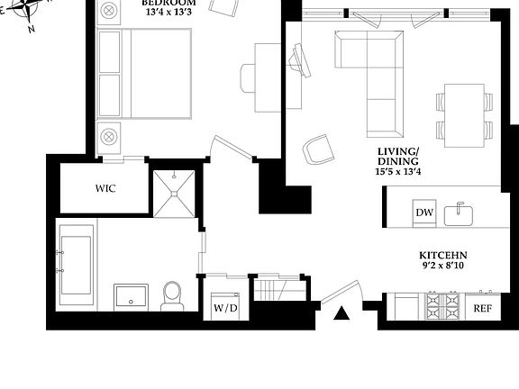 This large 1BR/1BA residence in the West Village features highly-crafted details, deeply luxurious finishes, and views over the lush private garden of The Greenwich Lane. Interiors are lofty and light-filled with floor-to-ceiling glass windows and rich oak hardwood floors in dark-stained finish. Exceptional custom millwork and 6 base throughout add to the finely tailored character of the home. A beautifully paneled wood entry door with Nanz hardware leads into the living/dining room. Opening into the living room is the immaculately tailored and thoughtfully considered kitchen with custom-paneled cabinetry in dark-stained finish designed by Thomas OBrien of Aero Studios, complemented by elegantly veined grey marble countertop and backsplash. The kitchen is fully equipped with Sub-Zero, Wolf, and Miele appliances and features Waterworks Aero Retro fittings in polished nickel finish. The master bedroom suite features a Juliette balcony, floor-to-ceiling glass windows with garden exposures, and a large walk-in-closet. The master bath is appointed with a custom millwork vanity, marble floor with mosaic detailing, glass-enclosed shower, deep soaking tub, and electric radiant heated floors. Additional residence features include: custom lighting designed by Thomas OBrien, LG washer/dryer, and four-pipe HVAC system with zoned climate control for maximum year-round flexibility.