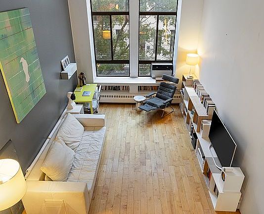 Apt 2I is a spacious duplex loft boasting 13 foot ceilings and oversized windows that look out onto the treetops of West 15 Street.