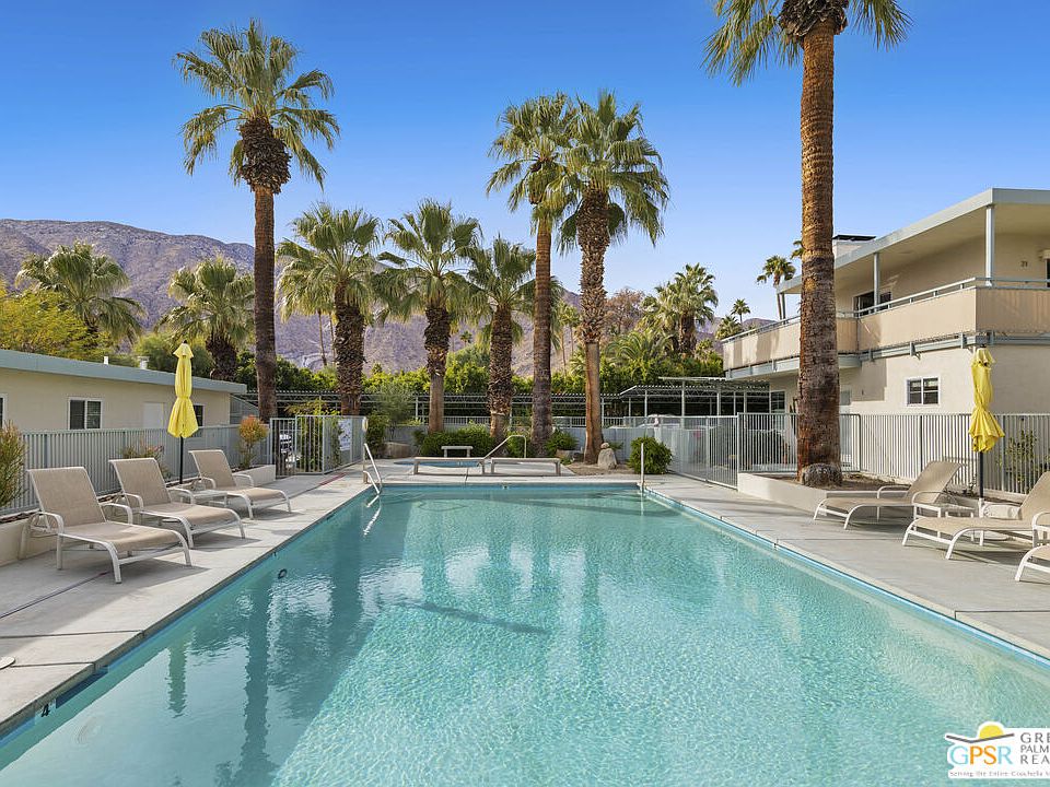 This "Gem" of a condo is ready for it's new relationship. Welcome to an historically significant one-bedroom, one-bathroom condominium that perfectly blends mid-century modern design with contemporary luxury. This 756 square-foot gem was originally built in 1947 as an iconic hotel designed by renowned architect Albert Frey. In 2003, it was thoughtfully converted into a collection of modern condominiums, preserving its architectural legacy while offering the convenience of today's amenities, The living area features modern design elements, and a sense of timeless elegance. The kitchen is both functional and stylish, with modern appliances and sleek countertops The bedroom is a serene retreat, with plenty of room to relax and an updated bathroom. The property offers access to a shared pool and lushly landscaped outdoor spaces, perfect for enjoying the warm Palm Springs weather and desert vistas. The charm and history of this property combine with modern comforts to create an exceptional living experience in one of the most desirable locations in Palm Springs. Villa Hermosa is ideally located in the Old Las Palmas neighborhood in Palm Springs, where you'll find world-class shopping, dining, and entertainment. Whether you're seeking a weekend getaway, a full-time residence, or a historic piece of Palm Springs history, this one-of-a-kind property offers a rare opportunity to own a piece of mid-century architectural brilliance .Don't miss your chance to experience Villa Hermosa a true Palm Springs icon.