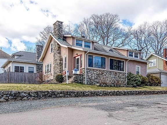 Sweet, spacious & supremely situated! This 1914 bungalow has quaint architecture & a bright, charming interior. The layout has excellent flow & flex space. Welcomed by a 3-season enclosed porch entryway, the main level offers a spacious living room w/stone fireplace, formal dining room w/ original built-in cabinet, an eat-in kitchen w/ butler’s pantry, 2 bedrooms, full bath and a mudroom that leads to the deck & outdoor space w/ hydrangea, hibiscus and more beautiful plantings.The 2nd floor hosts the large primary bedroom, the fourth bedroom, bonus room & half bath w/ a cute, cat-eye window. Great option for first-floor living. Hardwood floors, updated full bath, newly painted interior, detached garage, gravel parking area & basement. Enjoy Summer concerts(and more) at the Endicott Estate, minutes to 3 commuter rails & I-95, library, shopping & dining at Legacy Place, University Station, Rt.1 and Dedham Sq. Offers, if any, due Tuesday 3.26 by noon. Thank you.