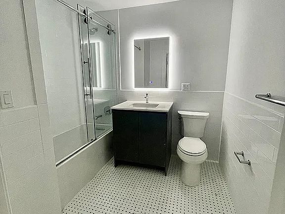 This building offers top-of-the-line appliances and modern finishes throughout, and this studio apartment is no exception. Located on the first floor, this studio faces the street and boasts brand new appliances, including a washer and dryer in-unit, dishwasher, illuminated touch screen vanity, and central AC. With ample natural light and an open floor plan, this studio is the perfect space to make your own.