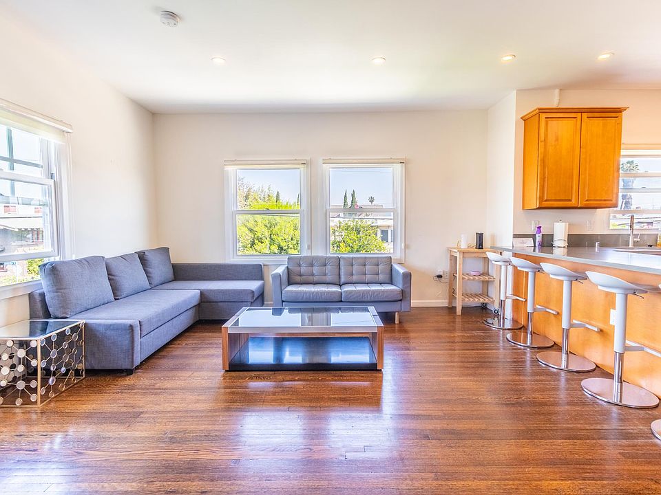 Fully Furnished (Or also Available unfurnished) down to towels, internet, cable, etc. Short Term from 1 month to a year lease available. $3600 rental is for 1 year lease. Short Term will be a higher rent. Just bring your Suitcase. Completely redone, new plumbing, new electrical, new central Air conditioning and heating, Large open kitchen and Large living room, 3 bedroom 2 bathroom 1254 square feet units, new stainless kitchen appliances, brand new kitchen, bathrooms all. Wired for network, LED recessed lights throughout unit with dimmers, Hardwood flooring and Thassos glass bathroom showers and floors. 9 Foot ceilings, view of downtown and Hollywood sign. Centrally located close to all including Beverly Hills 6 Miles, Hollywood 5 miles, FIDM 2 miles, USC 2 miles, Downtown 2 and a 1/2 miles, Santa Monica 12 miles, centrally located for easy Uber or public transportation. 2 parking spaces available. Short or Long Term Fully Furnished or unfurnished Home. Short term or yearly furnished or unfurnished rental.