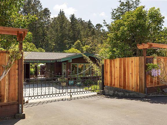 Envision yourself thriving in this forever dream home, situated on a flat sunny half-acre parcel, with two beautifully designed homes separated by lush mature landscape and privacy galore. This is your opportunity to create a joyful family compound or produce passive income for years to come. You will truly appreciate the park-like setting, and the exceptional level of craftsmanship and care in both homes. The main home features a single level open floor plan, wood finished open beam vaulted ceilings, a brilliant amount of light, custom mahogany and maple built-in cabinetry, and nature pouring in through every window. The stunning master suite is enhanced with a bay window seating area, granite fireplace, walk-in closet, master bath with jetted tub, steam shower, and a private slate patio ready for your own step-down hot tub. At the furthest edge of the property, out of sight & sound, rests an easy to access permitted 664sf ADU with all the amenities. Total combined sf 2,448.
