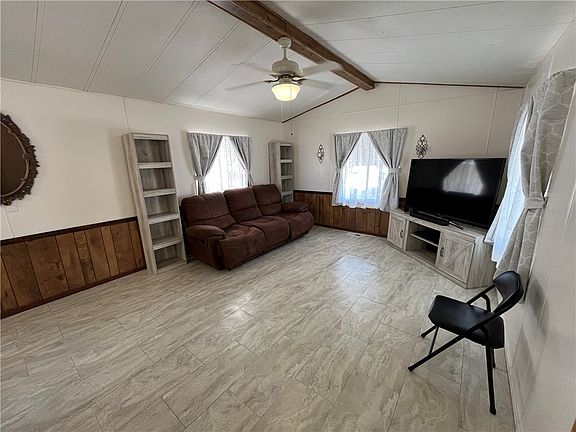 This open floorplan, two bedroom, one bath home is not going to need maintenance for a LONG time!! It's a great value for a first-time home-buyer, retiree, or future landlord. In the summer of 2021, all these systems were NEW: ROOF, HVAC, APPLIANCES, FLOORING, SKIRTING, BACK PORCH. In 2023, the PLUMBING was completely replaced from Street to Tap with PEX (schedule A). In September of 2024, the property was hooked into CITY SEWER service. The interior was repainted in September of 2024, and freshened in January of 2025. Truly a solid, trouble-free start for the next resident or landlord! The owner received $900/month for rent consistently dating back to 2021. Home is partially furnished, and furniture can convey for no extra value if the buyer wishes. The property also has a 10x10 insulated shed with electricity for your outside projects or extra storage. Impeccably clean and ready to move in tomorrow, come take a look!