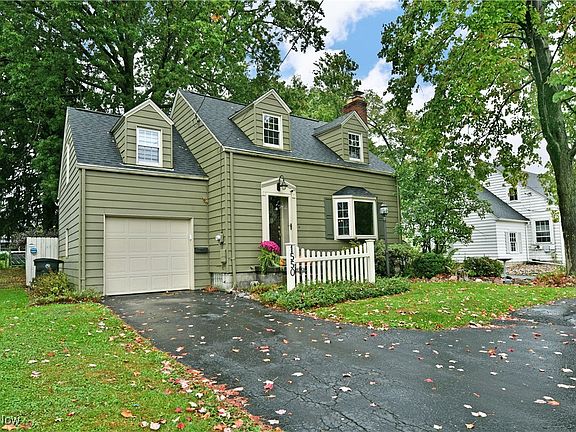 This cutie won't last! With character galore, this spacious cape cod home features a kitchen with KraftMaid cabinets, ceramic tile flooring, and all appliances included. Enjoy a massive great room with vaulted ceilings, a cozy fireplace and an adjacent half bath just perfect for holiday gatherings. Hardwood floors flow throughout the home, including the large living room with fireplace and three nicely sized bedrooms. Relax in the enclosed sun room accented with hardwood floors and real knotty pine paneling. The gorgeous remodeled bath adds modern elegance. The side and backyard are fully enclosed. The side brick paver patio is outfitted with a retractible sun setter awning, also included is a two story storage shed. The professionally waterproofed basement also offers peace of mind and versatile space.