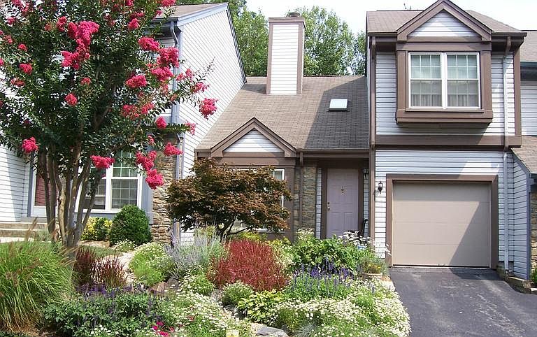 3 BR plus den, 3 1/2 Bath, garage Townhome in beautiful Tivoli. Sun filled with soaring cathedral ceilings and skylight, updated kitchen with Silestone counters & ceramic floor overlooking perennial gardens and a pond. Wood burning fireplace and main level garage. Newer carpet, windows and sliding glass door. Freshly painted and Move-in Ready. Close to Metro and shopping.