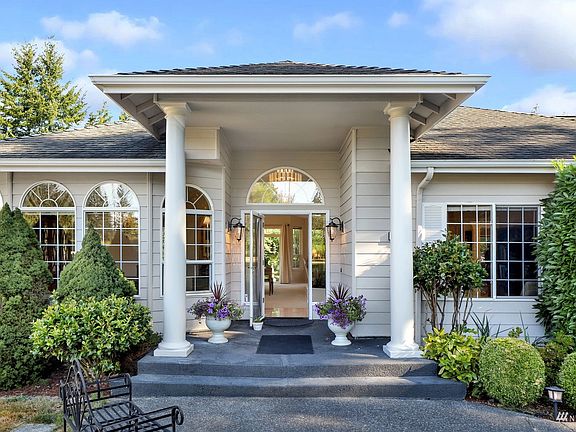 Beautiful Single Level Custom Home on a shy 5 acre lot. Nicely set back off the road down a private driveway, this lovely light filled home has vaulted ceilings, skylights & window walls throughout. The generously sized living room & kitchen open up onto the large patio. Double sided fireplace between the living room & the primary suite w/ walk in closet, jetted tub and door to patio. Large formal dining room for gatherings/entertaining. Many nice details throughout this well maintained, one owner home. Mature landscaping & fruit trees w/ plenty of room for gardens and shop. Oversized 2 car garage w/ workbench & additional room for shop/studio/home office. This move in ready home is located on a very quiet road and just 10 minutes to town!