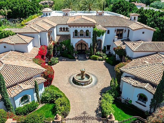 UNBELIEVABLE OPPORTUNITY! ONLY $418.59 per square foot - FURNISHED! This is a must experience gated Mediterranean estate situated on a secluded lot in the gated community of El Portillo. This is an entertainer's dream designed for resort-syle living. Drive through the rosebush hedges and a grand gate will welcome you to the motor courtyard where you'll find yourself on vacation in a beautiful foreign country. The sights, the sounds and the smells are heavenly. After you tour the fountain and flower gardens and make your way to the grand entry, you will be welcomed into a gorgeous foyer with 20+' ceilings, a grand staircase and a formal living room built for a king with views of the majestic backyard which has over 1200 sq ft of covered patios, a gorgeous fountain that... trails down to the playful grass area, a lush formally landscaped sanctuary with an all tile pool, a large ramada with sitting area, outdoor fireplace and other fun features! Plan weddings, proms, graduations, business meetings or neighborly get-togethers in this completely private tree lined private estate.