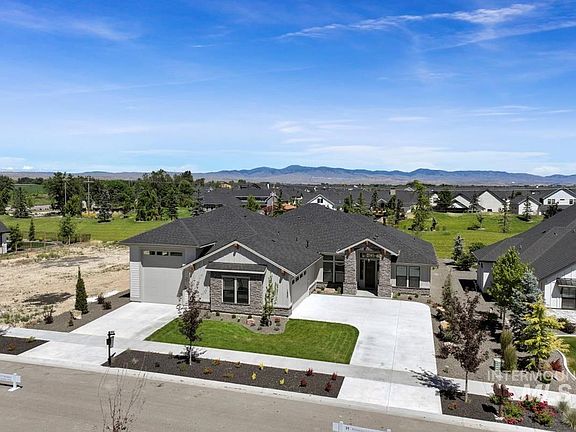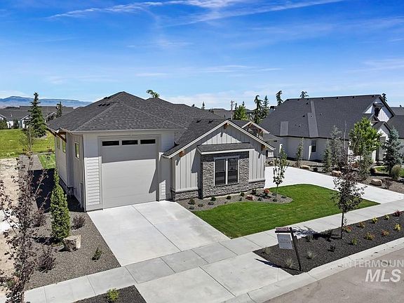 Hammett Homes is proud to present the Timberwolf. This grand single level home features large inviting space with tall ceilings & lots of natural light with all of the extra windows. The galley kitchen is large & features Bosch stainless steel appliances & a Bosch fridge. The great room features a cozy fireplace, custom bookcases & lighted mantel. The primary suite is huge featuring a large walk in closet connected to the laundry room, double sided fireplace, freestanding soaker tub, large tile walk in shower, & Hammett Homes signature backlit floating mirrors. The 2 additional bedrooms are on the opposite side of the home & are large with walk in closets. There is a dedicated office or 4th bedroom if needed. The RV garage is large & allows for multiple uses from boat storage, RV storage, car lifts, golf simulator, game tables, tv area, you name it. The Legacy community is top notch in Eagle featuring lush landscape, waterfalls, ponds, 3 hole golf course, & community pools. Do not miss out on this home!