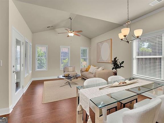 Welcome to this beautifully maintained, four-sided brick ranch gem in a sought-after Active Adult community! Enjoy the perfect combination of comfort, convenience, and low-maintenance living-where the HOA takes care of front and side yard maintenance and even repaints trim as needed. Inside, you'll be greeted by an open-concept floor plan with soaring cathedral ceilings and stunning engineered hardwood flooring throughout. The spacious eat-in kitchen features custom cabinetry, granite countertops, walk-in pantry, and ample storage, while the serene screened-in porch offers the perfect spot for your morning coffee and peaceful outdoor moments. Private fenced in backyard with stunning landscaping and garden will be your new place to play in the dirt! The oversized primary suite boasts cathedral ceilings, a large walk-in closet, and a spa-like, handicap-accessible bath with stepless tile shower, security grips and dual vanities. Two additional bedrooms and a full bath provide flexibility for guests or a home office. With low HOA fees of just $175/month, you'll enjoy wonderful amenities including a pool, clubhouse, fitness center, and gathering space! Additional highlights include fresh interior paint, new flooring throughout, a new HVAC system (2022), and seller is including a 1 year home warranty with Cinch. Conveniently located minutes from Downtown Cumming and easy access to 400 and Lake Lanier-this is the lifestyle you've been waiting for! Schedule your showing today and make this DREAM home your REALITY!!