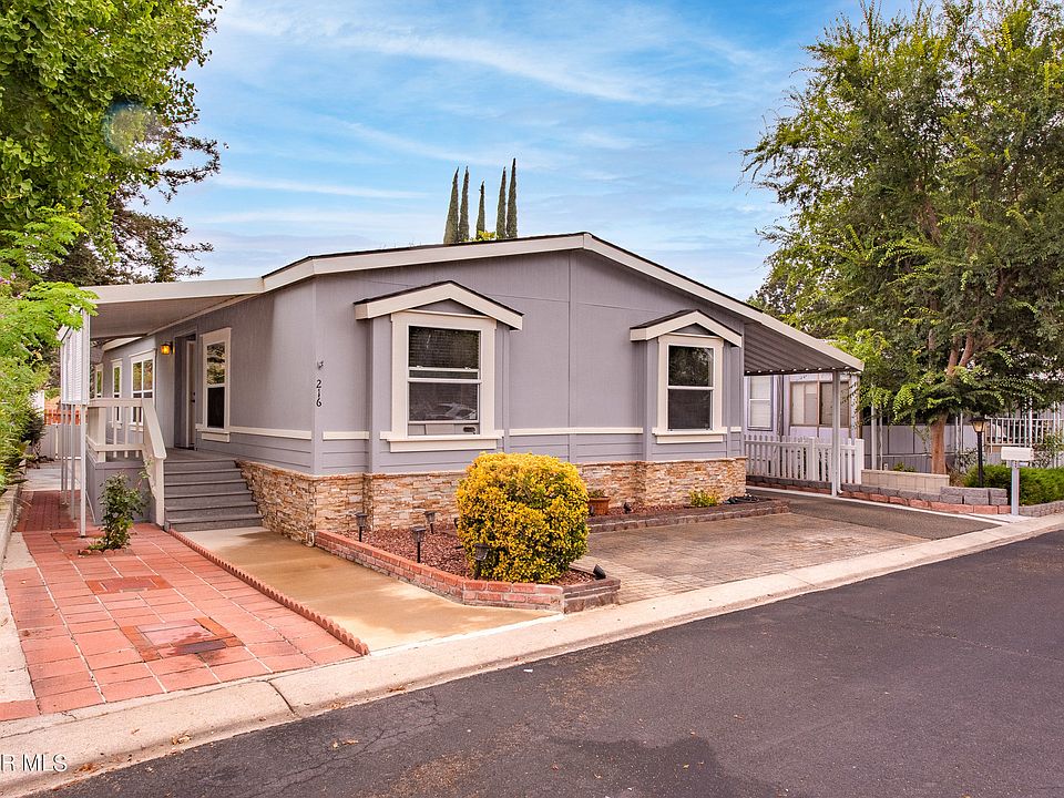 Welcome to Simi Country Estates located in East Simi Valley. This Double-Wide home sits in the back of the park, which gives privacy not many units have. Because of the location, there is a great backyard with beautiful views of the hillside. There is an oversized storage shed staying with the home. Inside the home has a lot to offer. Those top features include 3 bedrooms, 2 full bathrooms, a private office that could be used as a 4th bedroom, and over 1,600 Square Feet of living space. The kitchen has a lot of counter space and cabinet storage. Other features include wood-like floors, dual-pane windows throughout, chauffeured ceilings in the family room and dining area, vinyl fences, and an included washer/dryer and refrigerator. This family park offers a community pool, spa, green belt and a recreational room.