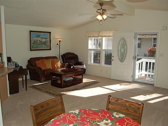 Spectacular Home! Spacious 3 bedrooms 2 baths home with a open floor plan. Newer built in 2006. Almost 1,300 SF of living space, features include Tile entry ,neutral carpeting throughout, Large master bedroom w/walk-in closet. Master bathroom has his/hers sinks w/separate shower & tub. Built-in desk & cabinets in one of the secondary bedrooms makes for a great home office!Spacious Kitchen & counter space, with loads of cabinets, newer appliances,recessed lighting & breakfast bar!Indoor laundry w/built-in cabinets. Central heating & air conditioning with Dual pane windows throughtout. Storm doors, Vaulted ceilings and Window coverings. Ceiling fans throughout rooms. Great storage shed outside, Newer vinyl fence with 2-car carport. 2 Community pools, spas, recreation room, guest parking. Close to shopping and freeway access! Great location!