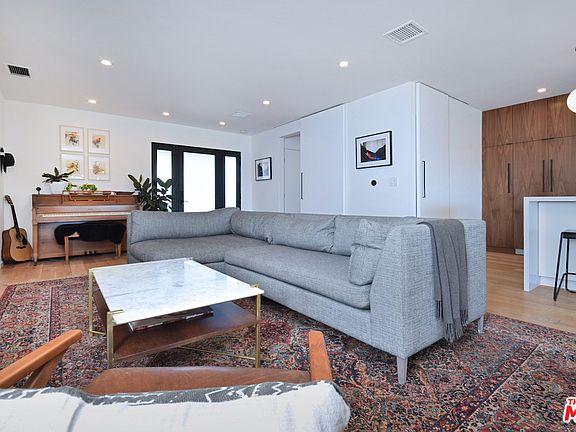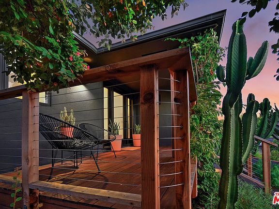 In the highly desirable neighborhood of Picfair Village you find this meticulously renovated three-bedroom, two and a half bath home with sweeping views of Los Angeles. This sunny residence boasts beautiful hardwood floors throughout, a state-of-the-art kitchen with an open floor-plan featuring an expansive island for eating and entertaining, custom walnut cabinets, quartz countertops, all new appliances, and a built-in refrigerator. Master suite has custom dual walk-in closets, en suite bath with custom walnut vanity and a skylight that provides plenty of natural light. Step through large Fleetwood sliding glass doors to a rear deck made of ultra-durable Red Balau lumbar decking which overlooks terraced outdoor dining and lounging areas surrounded by raised bed gardens, high-quality artificial turf, and drought-tolerant plants. In addition, there is ample basement storage which includes a workshop, and potential for an ADU. This home is truly one of a kind and not to miss!