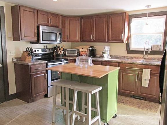 Tastefully remodeled Cape! Beautiful kitchen with brand new cabinets, new flooring, and stainless steel appliances. Dining and living room feature refinished hardwood floors. Gorgeous updated bathroom with built-in cabinets and linen closet. Large mudroom with 1st floor laundry. Large master bedroom with sitting area and large walk-in closet. Freshly stained deck overlooks private back yard and fire pit. Exterior is dressed up with mature landscaping, stamped concrete walk-ways and paved driveway. Shed is perfect for storing all your tools. Must See! Agent related to Seller.