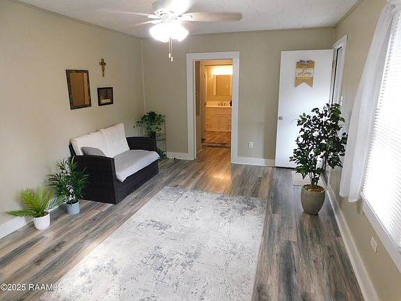 Charming bungalow with vinyl siding and a durable metal roof, perfect for a first-time homebuyer or investor! This home sits on piers and features open parking, luxury vinyl plank flooring throughout, a spacious living area with lots of natural light, built-ins for extra storage, and a kitchen with plenty of cabinets and a gas stove setup. The updated bathroom includes a modern vanity and tub/shower combo with sliding glass doors, and the property spans two lots with a shaded yard offering plenty of room for outdoor enjoyment. This one won't last long, schedule your showing today!