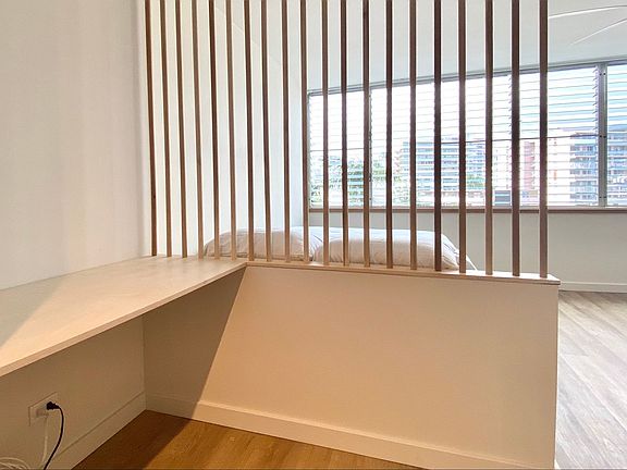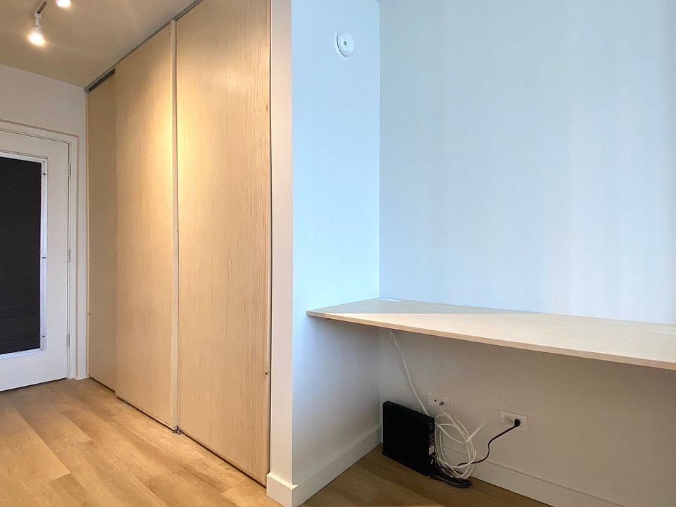 Bright and airy studioBuilt-in deskHigh-end finishesCustom cabinetryPartition wall