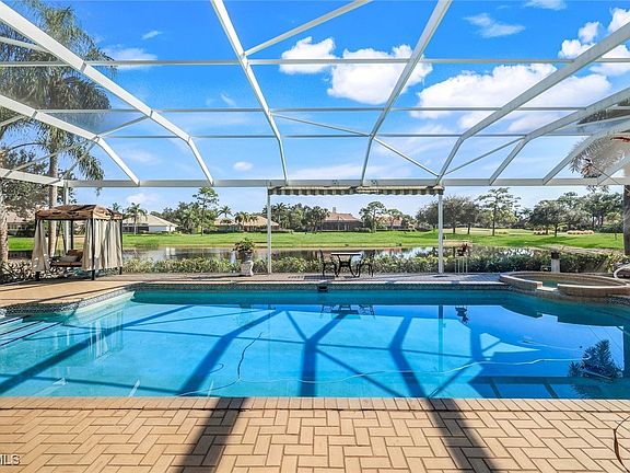 You have arrived at 15500 Gullane Ct., offering six bedrooms, five full baths and 2 half baths, immense room sizes, turn-key furnished, and an architectural scale rarely found in Fort Myers. Positioned on a quiet cul-de-sac with commanding street presence, this 8,400+ total square foot home is being sold turn-key furnished and delivers the lifestyle of a true Southwest Florida Executive home. A dramatic entry sets the tone, with 16+ foot ceilings, polished marble floors, fireplace and a dramatic staircase. This home offers unparalleled gathering and entertaining possibilities, and provides wonderful acoustics for music with a grand piano being included in the sale. At the top of the stairs, there is a large sprawling apartment with separate living quarters and three additional bedrooms and two full bathrooms. Perfect as a full in-law style apartment for multi-generational living. The classic library, with its fireplace and rich wood finishes, is a wonderful escape for card games, mahjongg, a movie, or to simply relax with a good book. Whether you are inside or outside on one of the multiple lanai’s or porches, there are so many peaceful places to enjoy the sweeping long-range views of the lake, plentiful with ducks, egrets, eagles and golfers playing through. The chef’s kitchen, formal dining, and generous spaces flow effortlessly. This home must be seen and experienced. What personal touches will you add, when you make it yours?.. The first floor primary suite spans its own luxurious wing, featuring a sun-filled sitting area and separate his and hers full bathrooms - each with dual sinks and walk-in showers, creating a level of comfort and privacy you deserve. Outdoor living is equally exceptional. An expansive screened lanai offers two distinct lounging and dining zones surrounding the oversized pool and spa, complete with a full outdoor kitchen and bar. This GEM stands as one of Fiddlesticks’ most iconic offerings—an extraordinary estate for the particular buyer seeking presence, privacy, and the ultimate country club living experience. Please call to schedule your private tour today!