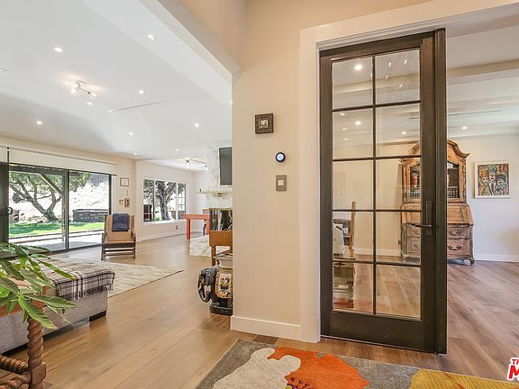 HUGE REDUCTION EASY TO SHOW!! Beautifully updated house with a grassy flat backyard situated at the end of a cul-de-sac in the coveted Royal Woods neighborhood in Sherman Oaks. The fantastic floor plan consists of a vaulted ceiling living room with a fireplace, adjacent to a separate dining area and looking out large sliding glass doors to the backyard. The cook's kitchen is well equipped with two ovens, a Family hub wifi refrigerator, part of the countertop is a removable cutting board and eat at bar area. En-suite main bedroom w/vaulted ceilings large sliding glass doors leading to the backyard gorgeous master bathroom w/separate tub, dual sinks, and shower and automatic bidet toilet. There are 2 additional bedrooms with a flex 4th bedroom/den/office/study. Extra-large addition off the kitchen is perfect for another office, family room, playroom, large dining area, or game room/bar. Huge grassy backyard with lots of room for a pool. New A/C and two tankless water heaters.