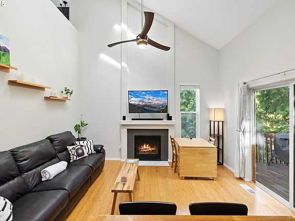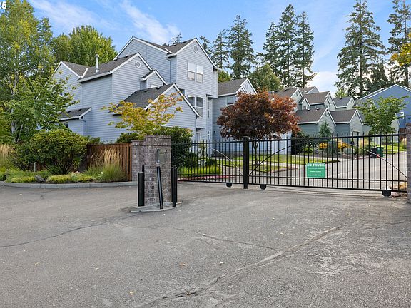 Who doesn't love walking into a townhome's main level? No stairs to get up to the main level! Modern, sun-filled townhome seeking peaceful loving human. Enter the secure gates, pull into the oversized garage, or park in your spacious driveway. Walk into your light filled, end-unit condo- throw your keys on the table, sink into your sofa next to the fireplace, gaze out your sliding glass door to the green space beyond. Nothing but peace and serenity surround you. Invite your friends to enjoy your great room with 18-foot vaulted ceilings with skylights, an amazing fan, and loads of windows. Pop over to the kitchen to prepare a gourmet meal or just appetizers, visit with friends, gather on the deck or sit by the gas fireplace and contemplate life. Enjoy the primary bedroom on the main level with ensuite bath or go upstairs to enjoy another large bedroom with full bath and large open loft with 2 closets- could be 3rd bedroom or a great home office. This townhome has it all- spacious living with tons of light streaming through the many windows, tons of storage, oversized garage, extra parking in the driveway, lots of visitor parking spaces, secure living behind the gated entrance, surrounded by nature outside of every window and a neighborhood park in your back yard. Living here means enjoying the best of Beaverton's shopping and dining options, with Murray Scholls Town Center, Progress Ridge and Washington Square all nearby. Outdoor enthusiasts will appreciate the vast network of parks, dog parks, walking/hiking trails close by. For those looking for a great investment- low HOA dues and no rental cap. Ring doorbell. Please park in the guest parking lot, to the right just before the security gate, there is a pedestrian gate- this townhouse is just across the way. Newer central air conditioning, lighting, appliances and more!