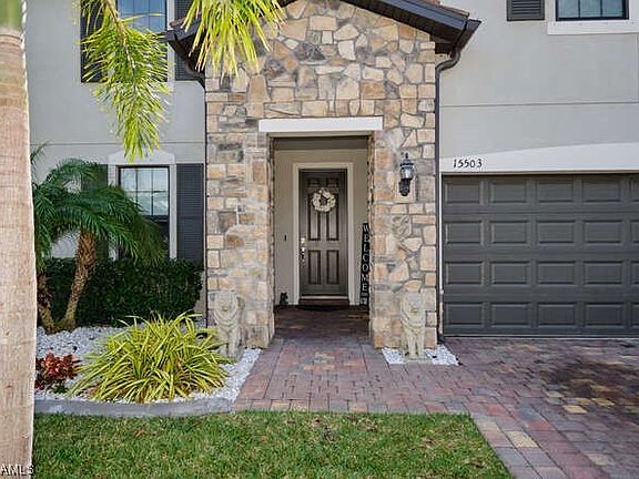 Welcome to 15503 Papyrus Ct a beautiful 4 bedroom plus a den, 2.5 bathroom single family home located in the highly sought after Hampton Lakes at River Hall and in a no flood zone. This property features an open concept, large kitchen island, solar panels, generator ready hook up, insulated and AC garage, heated pool, covered lanai with an outdoor kitchen, perfect for outdoor entertaining or simply enjoying the sunshine. The second floor has a huge loft that is perfect for gaming, entertaining or as a second living room. The community features amenities including a 14,000 sq. ft. clubhouse, lagoon style pool, fitness center, sports court, and 18-hole golf course (membership optional). This home is located just a few miles from the interstate, shopping, restaurants and outdoor activities, so come enjoy what SWFL has to offer. For the right offer seller will pay off solar panels at closing.