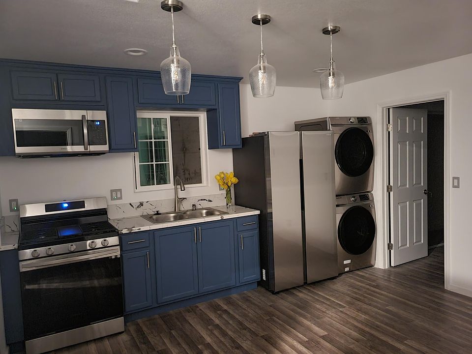 - Included: Dryer, Microwave, Range / Oven, Washer