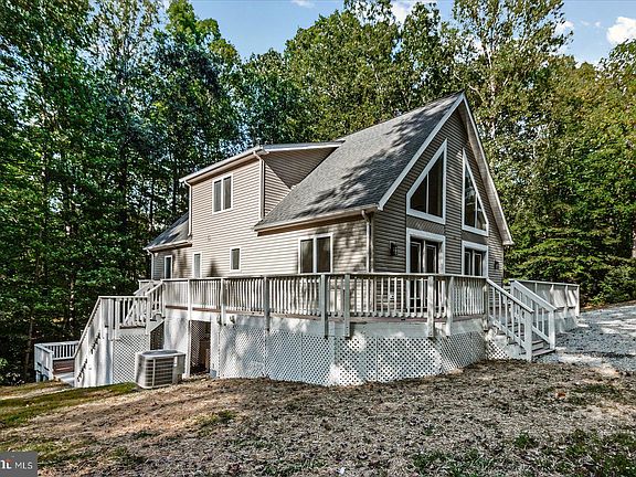 Welcome to this stunning updated A-frame retreat offering over 3,000 square feet of living space and situated on just under two acres. The home greets you with a massive wraparound deck—perfect for entertaining or simply enjoying the peaceful natural surroundings. Inside, you’ll find soaring ceilings with beautiful exposed beams and an abundance of natural light throughout. The main level features a spacious primary suite with its own luxurious ensuite bath complete with a soaking tub. Upstairs and on the lower level, you’ll find three additional bedrooms and three full bathrooms, providing comfort and privacy for family and guests alike. This unique home combines modern updates with timeless charm, offering the perfect balance of character and functionality. As part of the sought-after community, you’ll also enjoy exclusive amenities including a private beach on Lake Anna and access to a community dock where boat slips can be reserved. Whether you’re seeking a full-time residence or a weekend lake escape, this property delivers the ideal combination of space, style, and location.