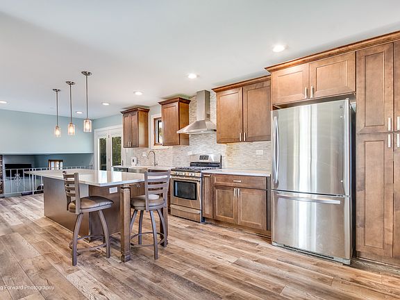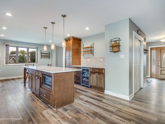 LOCATION, LOCATION, LOCATION! Situated in the highly desired Meadowview subdivision on an oversized 1/2 acre cul-de-sac lot, this spacious quad-level home offers 4 bedrooms and 3 full bathrooms! Featuring an open floor plan with an eat-in kitchen boasting stainless steel appliances, quartz countertops, a center island, farmhouse sink, beverage refrigerator, Nucore Vinyl Plank flooring and butler's pantry. The lower level includes a cozy family room with a brick gas fireplace, laundry room, and 4th bedroom. Upstairs, the primary suite offers a private ensuite bath, while 2 additional bedrooms share a full hall bathroom. Enjoy outdoor living on the large deck overlooking the massive yard. Additional highlights include a 2.5-car heated garage and excellent schools-District #33C elementary and middle schools, and District #205 Lockport Township High School. Basement had some small foundation cracks that were professionally repaired, with carpet and paneling removed in the process. Home is being sold AS-IS. Welcome home!
