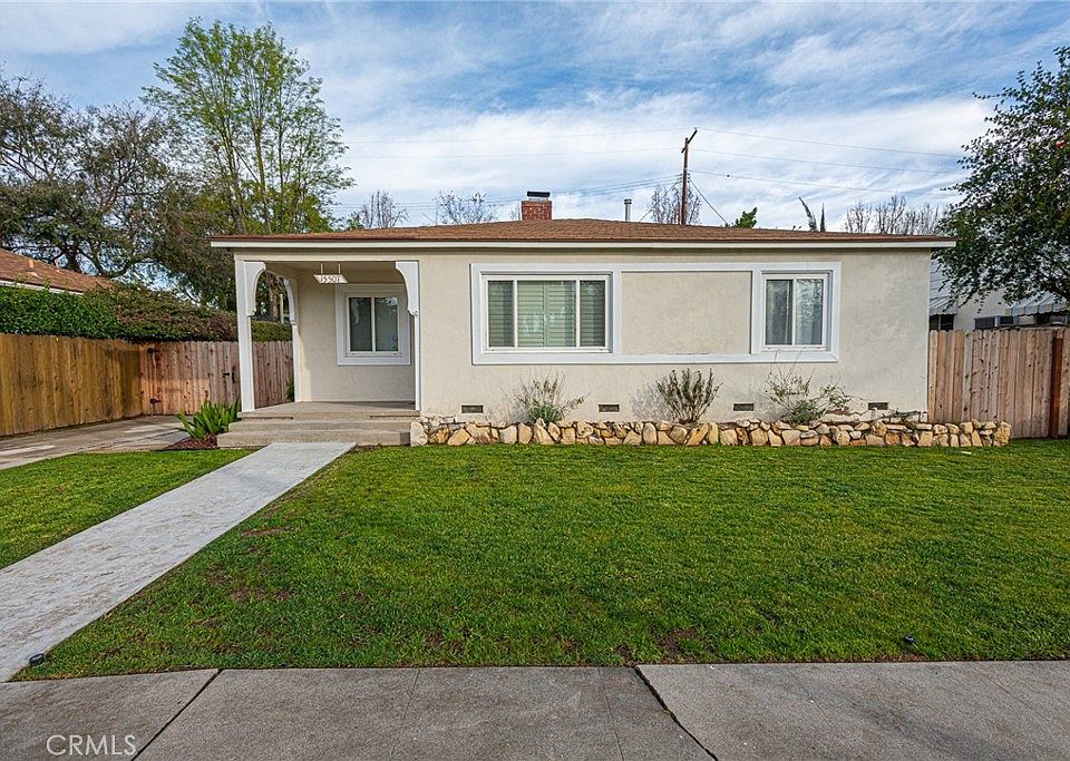 Cheerful 2 bedroom, 2 bathroom, located on a quiet, family-friendly cul-de-sac. A picture window fills the living room with natural light and a wood-burning fireplace highlights the home's original charm. The dining room leads to a vintage-inspired kitchen featuring a breakfast bar and plenty of cabinets for storage. The kitchen is open to an inviting family room, accented by a sliding glass door that provides access to the private yard. A perfect venue for hosting year-round BBQs for family and friends, the backyard features a covered dining patio and lush lawn. When it is time to unwind you will find a spacious master bedroom with an ensuite bathroom with dual vanity and glass shower enclosure. The second bedroom is well-sized and offers views of the lavender bushes and lawn in the front yard. Finally, a second bathroom with a tub and separate shower enclosure completes this home. In addition, this home has hardwood floors, central AC/heat, NEST to optimize heating and cooling, a detached 2-car garage for a possible accessory dwelling unit, space for an RV, a newer water heater, and a laundry area. Close to the Japanese Garden, Lake Balboa, Balboa golf course, and much more. Easy access to the 405 freeway, close to public transportation, and a short distance to many restaurants and convenience stores.