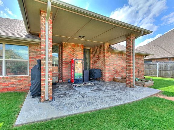 Beautiful home in the Lone Oak Lakes gated community with playground and fishing ponds. Features 4 Beds, engineered wood flooring, & high ceiling with wood beams. Primary bedroom boasts barrel ceiling with recessed lighting, walk-in shower, and spacious walk-in closet. Large backyard with paved firepit sitting area, raised garden bed, & covered patio. Backs to neighborhood street so no home directly behind. Additional amenities include storm shelter in garage, sprinkler system, and tankless hot water. Roof recently replaced in 2021. Located in Deer Creek Schools and easy access to Turnpike.