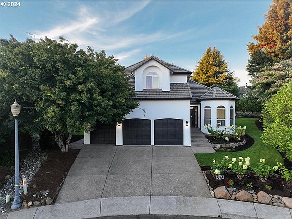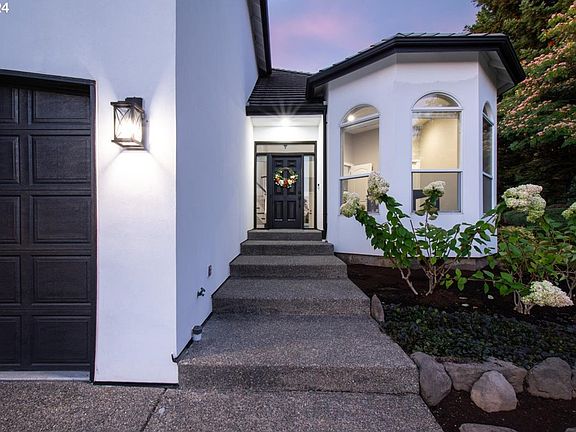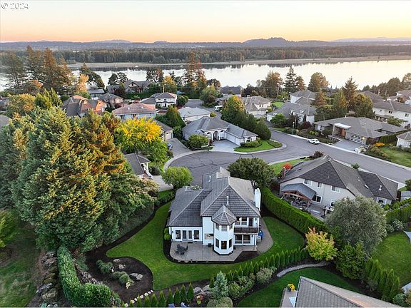 Hard to find in highly sought after, desirable, Evergreen Hwy neighborhood. Custom built with architectural interest, higher-end quality, and a smaller foot print. This home has been lovingly cared for and tastefully updated/remodeled on the main level. Upon entering you will be impressed with the dramatic two story high foyer, open-rail staircase, and 10' vaulted ceiling over the formal living and dining rooms. You'll love the gorgeous, wide plank engineered hardwood floors. Main level features a bedroom, bathroom with walk-in shower, and utility room with built-in sink and cabinets. If you like to cook or entertain the gourmet kitchen won't disappoint you. It was completely remodeled in 2022 and features white cabinets with black hardware, quartz counters with white subway tile backsplash, stainless steel appliances, gas downdraft in the oversized island, under cabinet lighting, walk-in pantry closet, and bayed nook for informal dining. The expansive family room and kitchen have a spacious but intimate feeling with 9' ceilings, cozy gas fireplace features a white mantle and stone hearth, adjacent built-in cabinets with bookshelves, and a beautiful stone wall backdrop that extends to the ceiling. King sized primary bedroom has a French door to a private deck, see-through gas fireplace, jetted tub to enjoy the fireplace from the ensuite bath, double sink vanity, and generous sized walk-in closet. Enjoy intimate or large gatherings on the expansive patio that connects from the informal dining area to the French doors off the formal living/dining rooms. Territorial view of the Portland city lights & partial Columbia River from south facing rooms. The landscaping has been redone to create privacy and more backyard living space. New stucco on front installed in 2022, and exterior repainted in 2022. New Hunter Douglas blinds installed in 2022, owned security system with cameras through Xfinity. Convenient, close-in location to restaurant, shopping, and PDX.