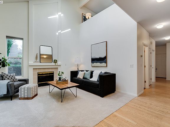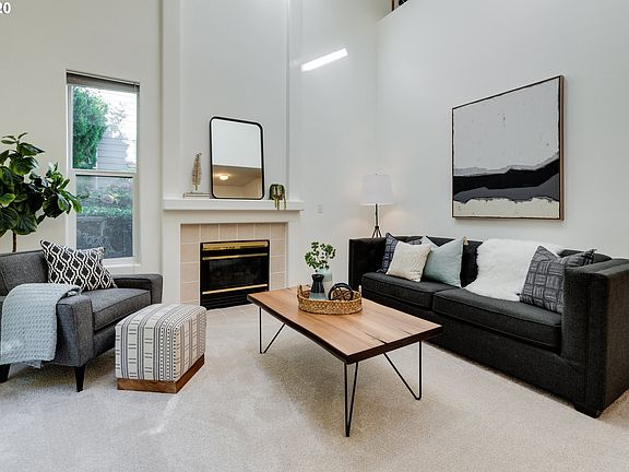 Sunny Beaverton townhouse with master on the main! End unit! Family room with gas fireplace & high ceilings. Upstairs is an open loft - perfect for an office or flex space. 2nd bedroom & full bath also upstairs. Brand new carpet & interior paint. Brand new deck that is serene and private, backing to the green space. Newer roof, exterior paint & water heater. Single car attached garage with laundry. This home is part of a gated community & is completely move in ready!