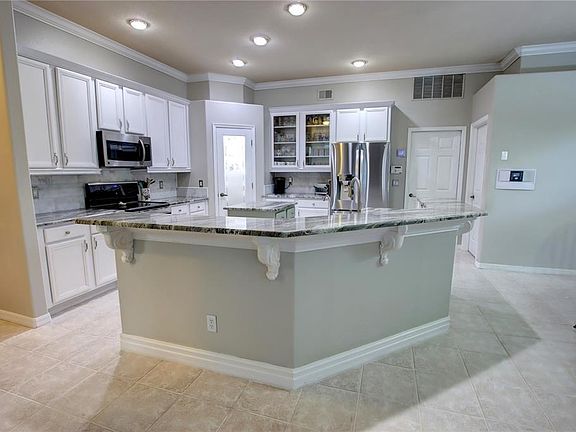 Welcome to a beautifully maintained and thoughtfully upgraded 5-bedroom, 3,517 sq ft home set on a fenced-in double lot. Inside, the home features five generously sized bedrooms plus a media room, with an open-concept layout that seamlessly connects the family room and kitchen—ideal for entertaining or everyday life. The kitchen is recently remodeled and features granite countertops, easy-access pull-out cabinets, and a custom pantry. California-style closets offer sleek organization throughout, while hardwood flooring graces all bedrooms, the media room, and staircase. Crown molding enhances the main living areas, and the freshly painted exterior—with self-cleaning paint—ensures your curb appeal remains high with minimal effort. A newly paved driveway adds to the home’s polished look, while the 7-year-old roof remains in excellent condition. Built for efficiency and peace of mind, the home is powered by a solar energy system that covers the entire household and even supports an electric vehicle. Solar pool heating, a 16 SEER upgraded A/C system with electronic filters, and ceiling fans in every room provide year-round comfort. Additional attic insulation also reduces energy use. Water-saving features include a whole-house water softener and drinking water purification system, along with a separate irrigation meter to keep lawn care costs low. The newly refinished saltwater pool features a variable-speed pump for optimal energy efficiency, and the extended lanai with a built-in outdoor kitchen creates a private backyard oasis perfect for relaxing or entertaining. The garage includes built-in cabinetry and attic access for extra storage. The windows and doors have impact-resistant film. All of this comes at just $260 per square foot—making it the best value in Heathrow. With luxury finishes, energy-efficient systems, and storm-ready features, this home is a rare find. Don’t miss your opportunity to make it yours—schedule your private showing today!