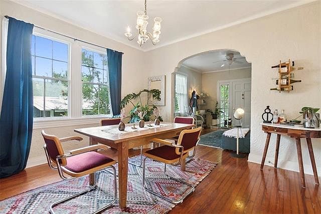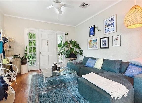 Shared rear courtyardCovered front porchOn site laundrySeparate dining roomTons of natural lightHardwood floorsHigh ceilings