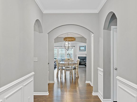 Nestled in the tranquil boutique community The Grove, this stunning Mungo home built in 2019 boasts the desirable Westbury plan, offering an impressive blend of comfort and elegance. With dual primary suites on the first floor and a bonus loft area, this 4-bedroom, 3.5-bathroom haven is a true find. Step inside and be greeted by arched openings that add a touch of architectural charm throughout the home. The open kitchen is a culinary enthusiast's dream, featuring granite countertops, stainless steel appliances, and a convenient breakfast bar overlooking the dining room. Enjoy the convenience of a laundry room complete with a folding table, adding practicality to your daily routine. The family room is the heart of the home, anchored by a cozy gas log fireplace and bathed in natural light pouring in through the windows and sliding glass door, leading out to the inviting screened-in porch. The primary suite situated at the back of the home offers a spacious retreat with a generous en suite featuring dual vanities, a tiled walk-in shower, and an ample closet. Privacy is ensured, with the second primary suite thoughtfully placed on the opposite side of the main level, at the front of the home.