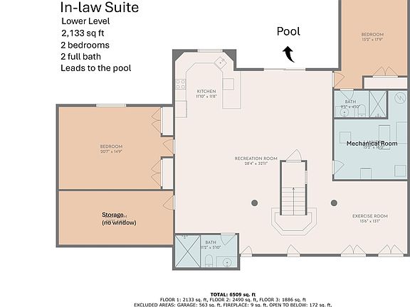 What truly sets this home apart is the exceptional in-law suite. It offers a spacious, private living space featuring a full kitchen with cherry cabinets, granite counters, expansive living and dining areas, 2 bedrooms, and 2 full baths, and two bonus rooms ideal for a gym, office, or storage. Sliders provide direct access to the pool area, making this suite both functional and inviting.