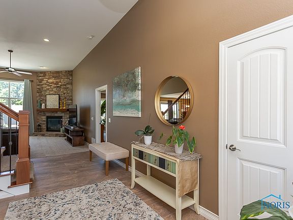 Located in the beautiful neighborhood of Eagle's Landing, this traditional Rigg-built home has a nice, welcoming floorplan w plenty of space. On the main floor, you'll find a spacious FR w high ceilings, stone fireplace & beautiful views of the golf course. Large, eat-in kitchen w peninsula seating & walk-in pantry. SS appliances stay 1st floor master suite w attached en-suite. Dble vanity & tile walk-in shower. Upstairs, 3 additional bedrooms. The finished LL offers great additional living space w 9ft ceilings & a second half-bath. Large concrete patio off the back to enjoy your water view