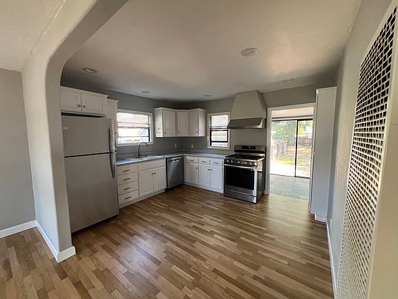 Unit A , the front house. Two bedroom one bath. Big, private, non shared backyard, stainless appliances, washer and dryer, mini split heating and air conditioning. Real hardwood flooring. Off street parking. Water, gas and electricity included. One year lease. No smoking. Small dog allowed, no cats. Utilities included in rent. Off street parking.